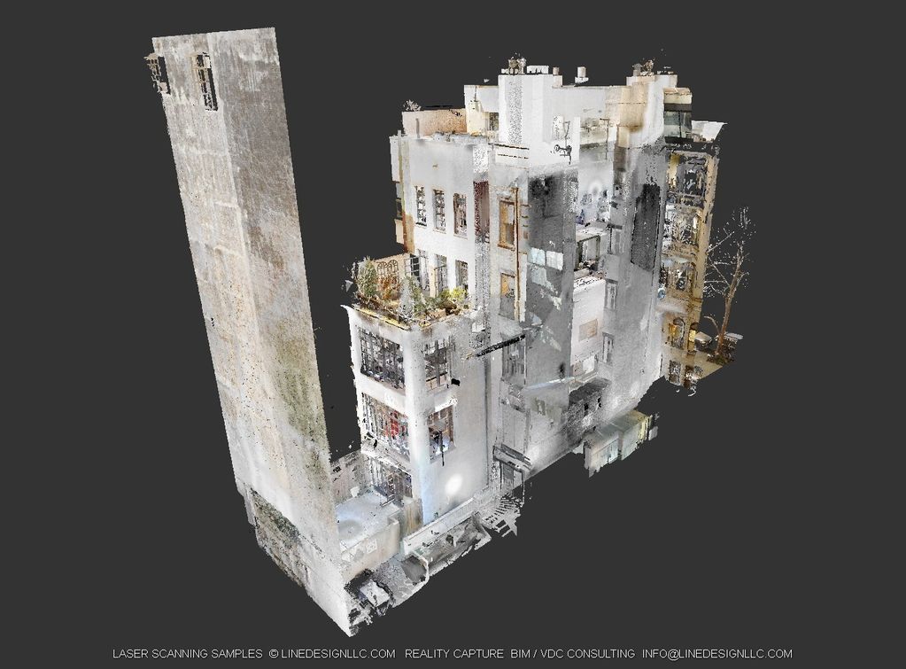 Vertical Section screenshot from the 3D Point Cloud of a Townhouse project in NYC. The Point Cloud provids accurate representation of the existing conditions in HDR Colors.